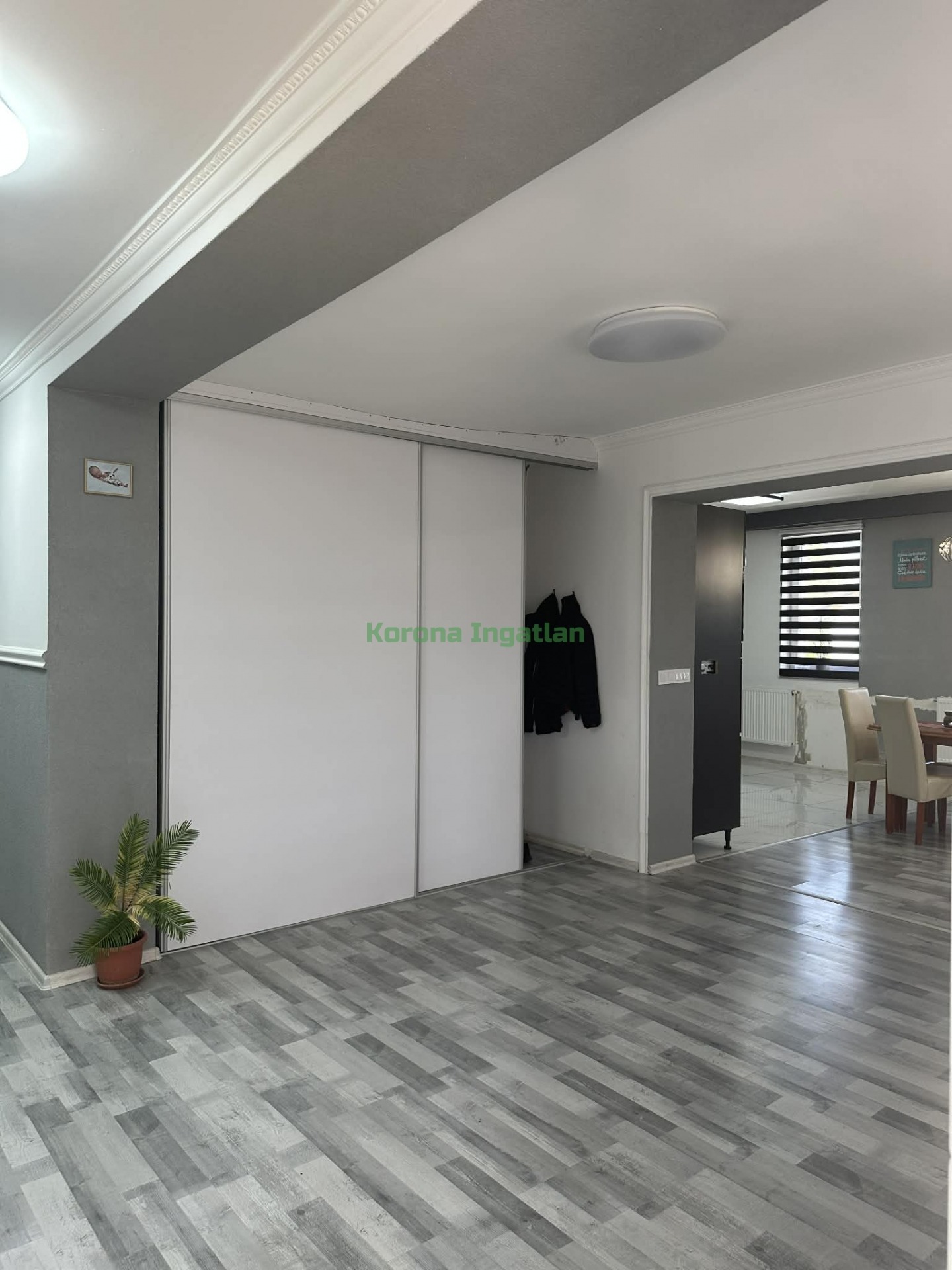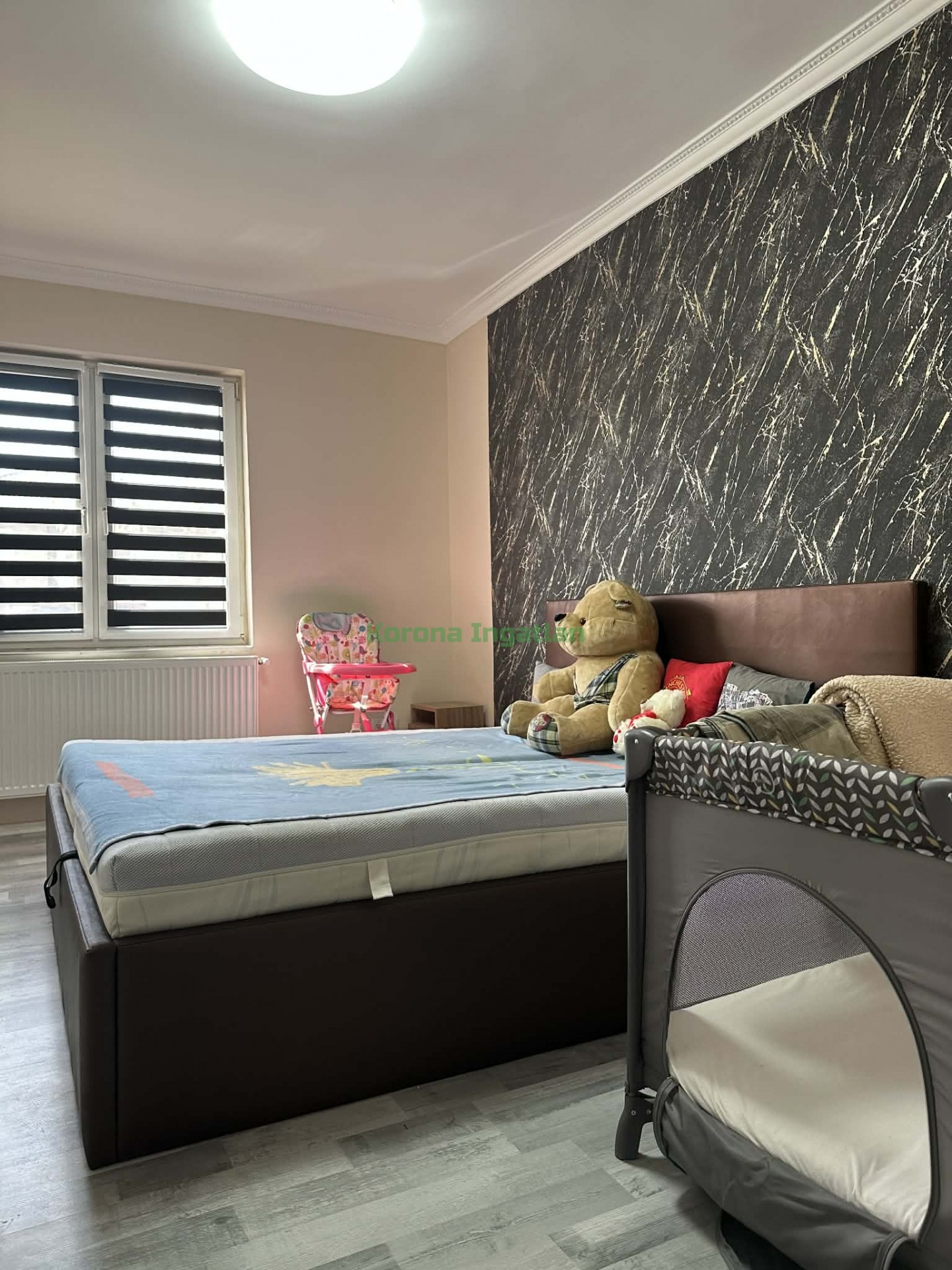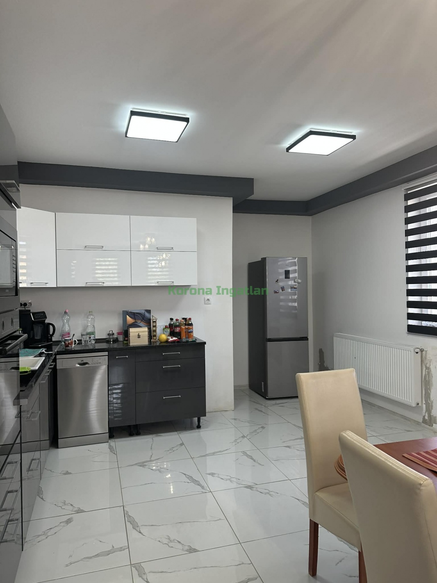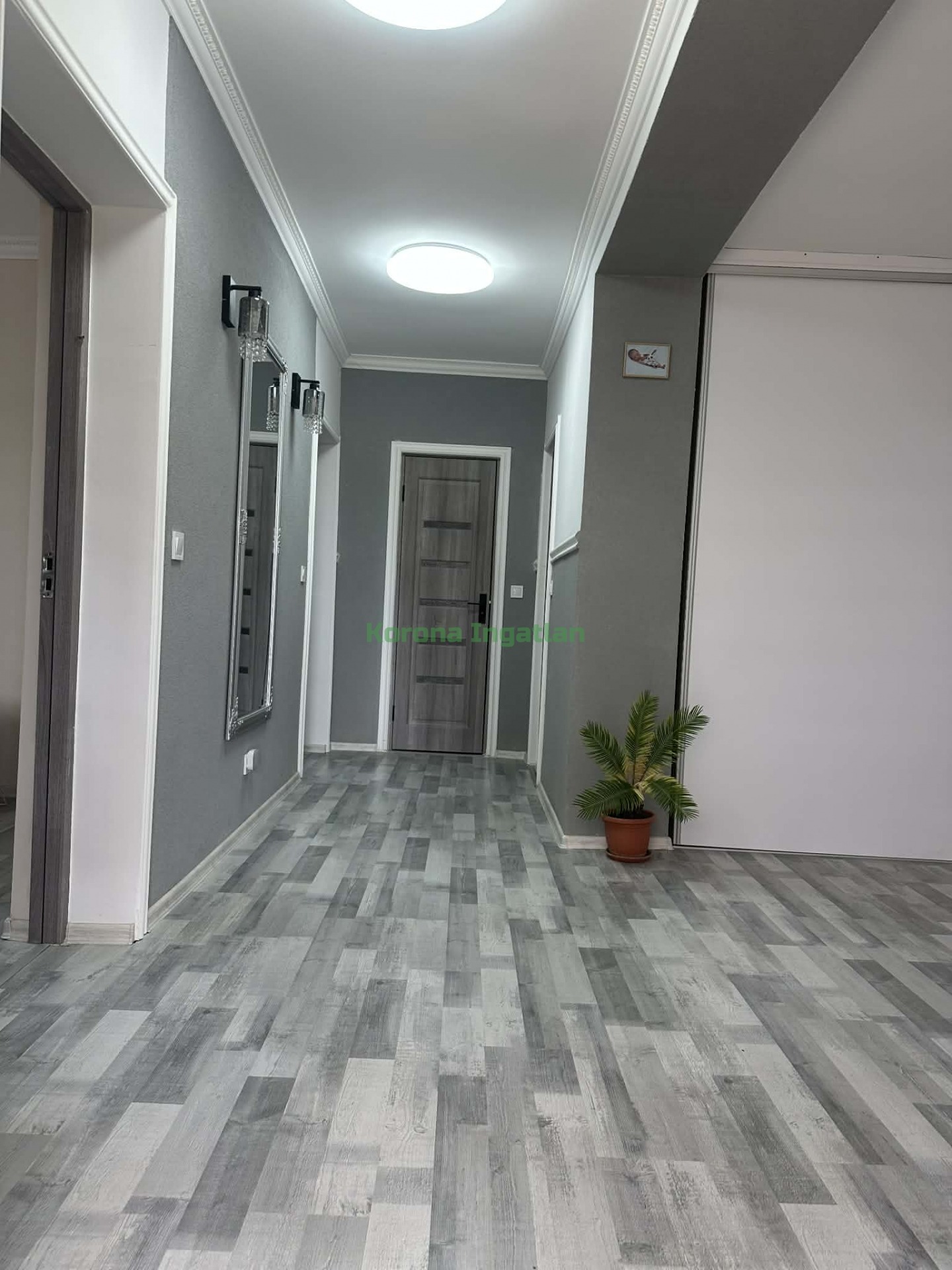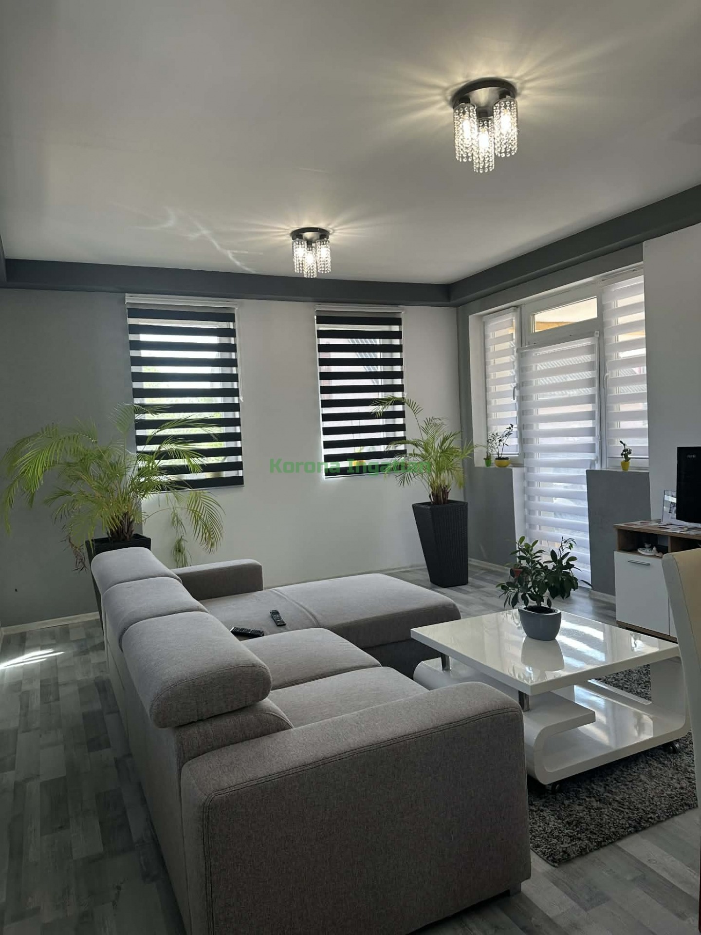 Helyiségek: hatalmas előtér, 2 külön nyíló szoba, nappali + amerikai konyha + étkező, fürdőszoba, külön WC.