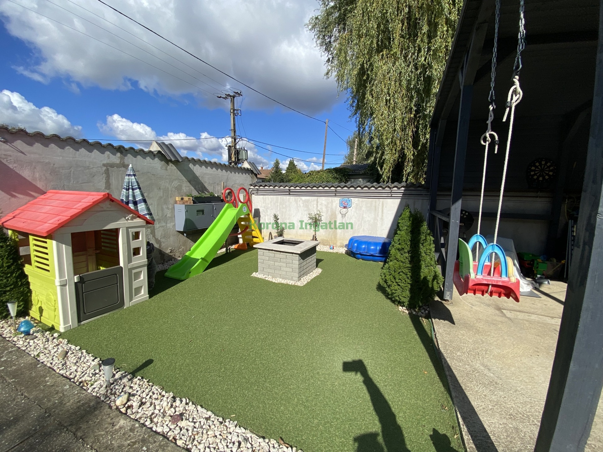 A kertben szalonnasütő, nagy filagória és műfű várja a családi programokat, így ideális hely a pihenésre és a szabadidős tevékenységekre.
