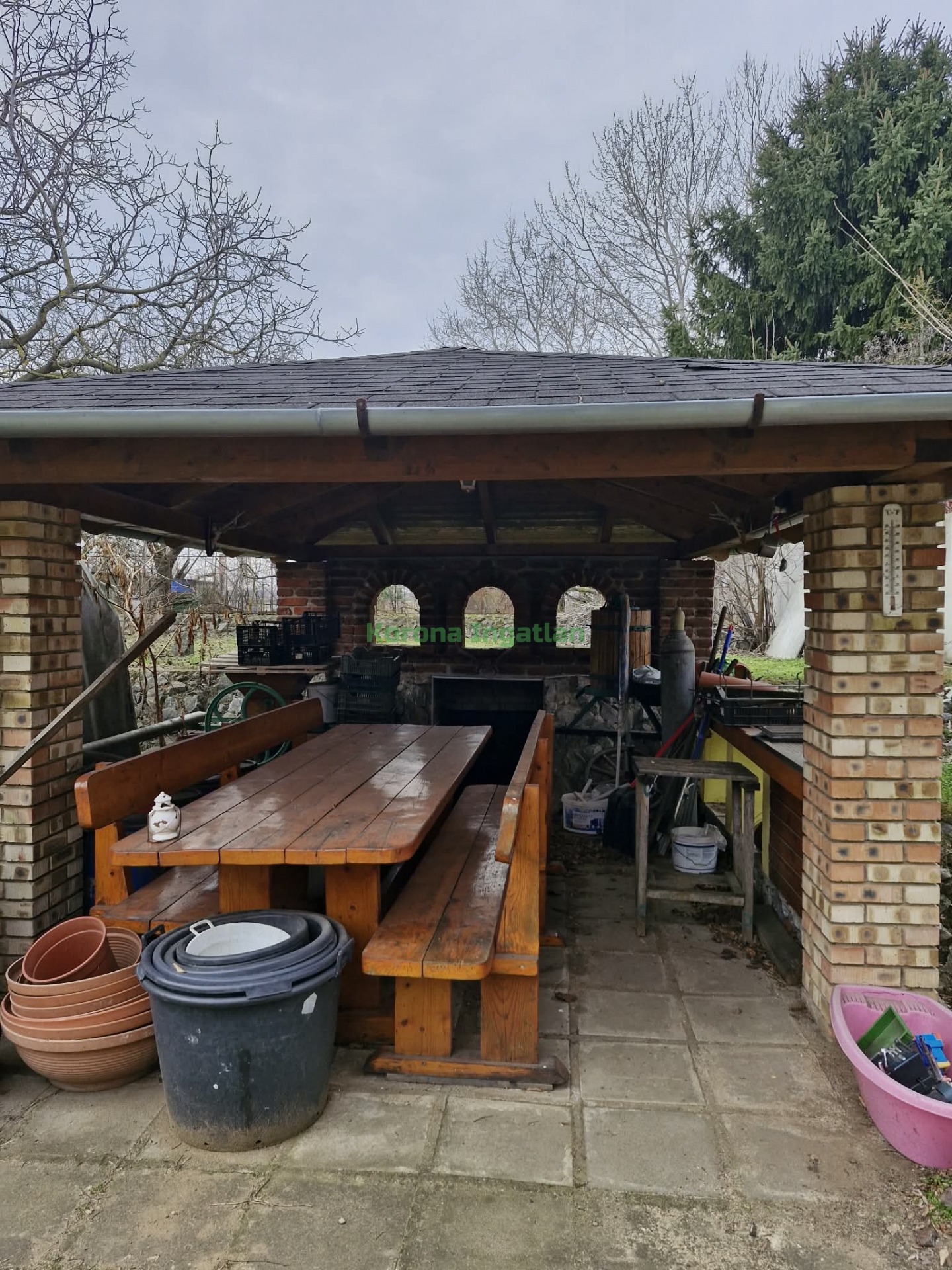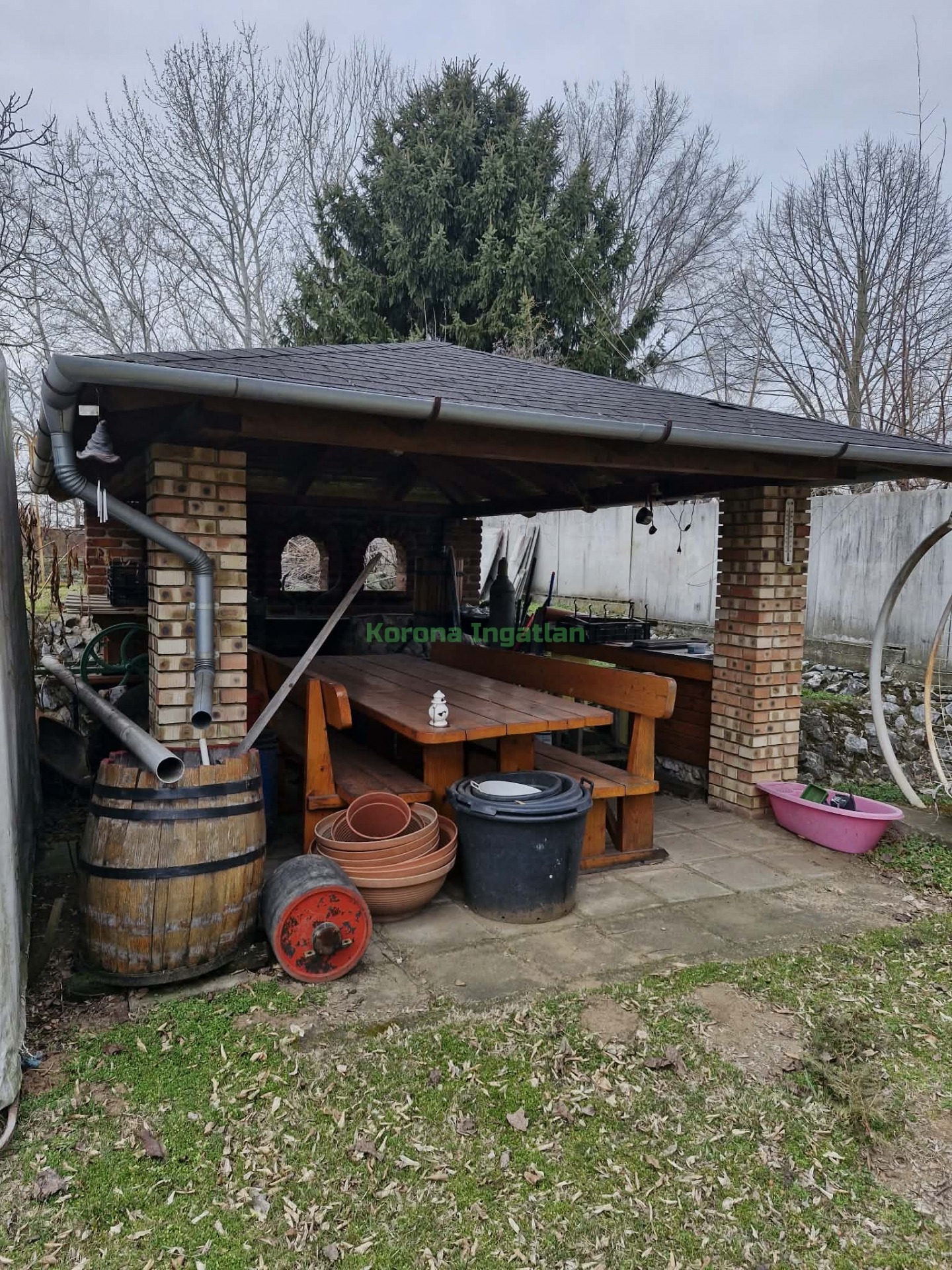 Eladásra kínálunk egy 1050nm-es telken lévő ingatlant 3 garázzsal, fedett kocsibeállóval, külön kerti főző résszel, kemencével, melyhez borospince kapcsolódik, amely 15nm.